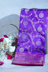 Embrace the charm of royalty with this Purple Banarasi Katan Alfi Jaal Saree. The deep purple silk base is beautifully accentuated with silver zari alfi jaal motifs, creating an enchanting all-over pattern that radiates timeless elegance. Its sheen and intricate weaving reflect the unmatched artistry of Banarasi handloom.