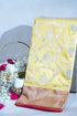 Shine with radiant elegance in this Yellow Banarasi Katan Alfi Jaal Saree. The bright yellow silk base is intricately woven with silver zari alfi jaal motifs, creating a graceful all-over pattern that exudes festive charm. The luxurious drape with its vibrant hue makes it a perfect pick for grand occasions.