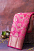 • Soft, vibrant pink tone with a luminous Banarasi sheen
