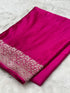 Bold, radiant, and timeless — this Pure Banarasi Mashru Silk Saree in a striking magenta shade is a true expression of Banarasi heritage. The lustrous Mashru silk fabric glows with a rich sheen while offering a soft, elegant drape.